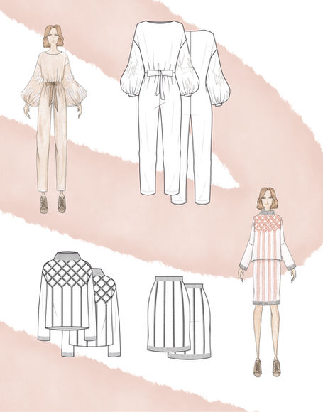 This is the second capsule of a three part collection on which my senior thesis was based. When designing this collection, I wanted to take the safe comfortable feeling of being at home curled up in a warm blanket and bring it into clothing that was still appropriate for the everyday. A primary way I achieved this was through the incorporation of fabrications that added volume and warmth. In this capsule, I did this by using dimension knit textures and embroideries done with yarn.